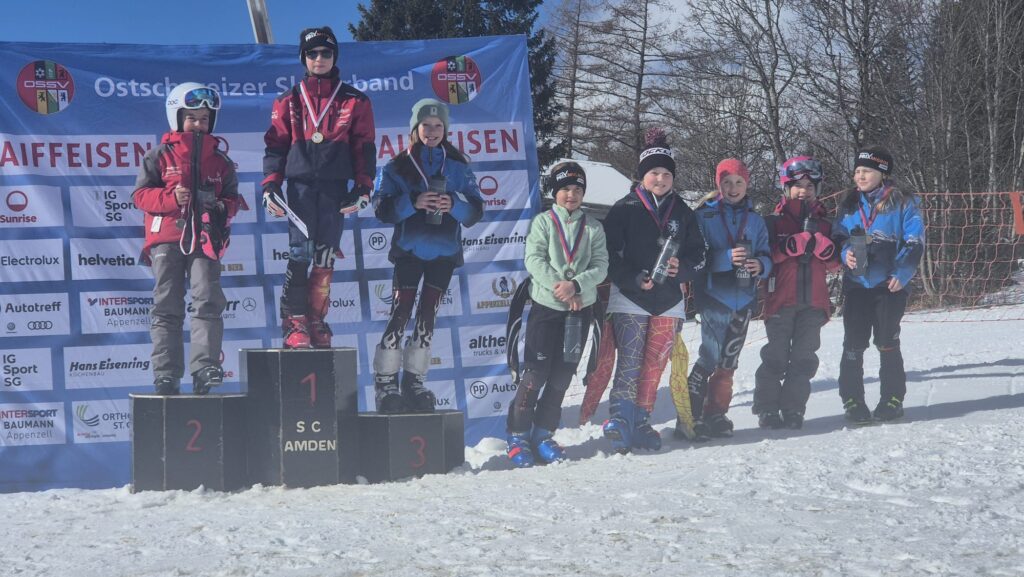 Am Sonntag, 8. März, standen im OSSV Raiffeisen Cup die letzten Rennen auf der Ebenalp auf dem Programm. Bei strahlendem Sonnenschein und perfekten Bedingungen fuhren die Mädchen auf die guten Plätze 4 (Lena Bollhalder), 6 (Ella Schwendeler) und 9 (Elin Näf). Bei den Knaben wurden die Plätze 5 (Lasse Huser), 14 (Leo Haas), 21 (Julian Martin) und 30 (Loris Giezendanner) herausgefahren – Rangliste 1083.