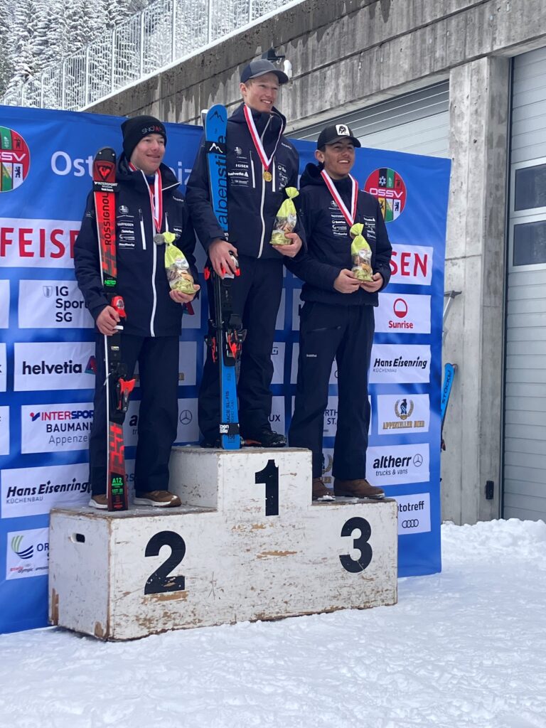 Die Riesenslalom OSSV-Meisterschaft gewann Elian Rüdlinger, dicht hinter ihm auf dem sehr guten zweiten Rang Noah Rusch vom SSC Toggenburg. Dritter wurde Jan Haas von der TG Appenzell – allen herzliche Gratulation zu ihren starken Leistungen!